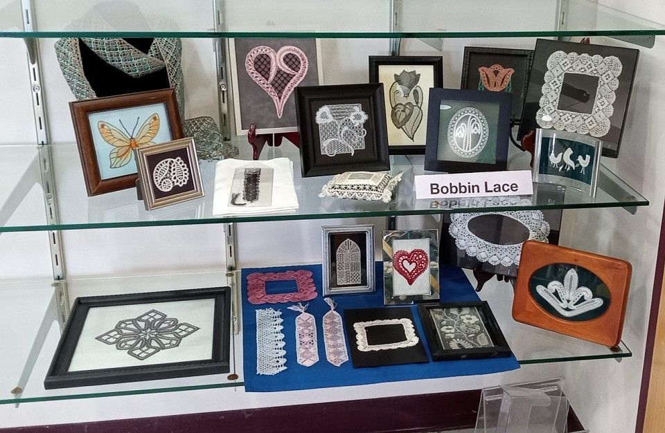 The Gillie Senior Center celebrated their 25th anniversary this week and so generously asked us to put together a Bobbin Lace display in the Center’s lobby.